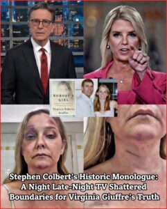 Colbert didn’t perform. He testified. For Giuffre—the survivor whose truth power tried to bury—this was validation from late-night’s loudest voice. The silence shatters. The nation confronts what it pretended not to see.