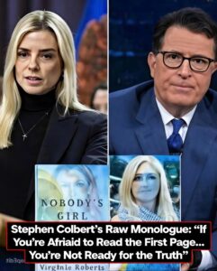 No warning, no jokes, no script. On January 7, 2026, Stephen Colbert walked onto The Late Show stage with red eyes and Virginia Giuffre’s memoir Nobody’s Girl in his hand, as if he had just seen what millions are still too afraid to face. What began as a simple tribute instantly morphed into a fiery manifesto.