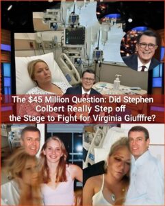 A viral story has swept across social media and news aggregators claiming that Stephen Colbert is leaving late-night television to personally fund a $45 million legal campaign supporting Virginia Giuffre’s family against 35 powerful figures allegedly connected to the Epstein scandal. The narrative includes a dramatic quote — “Before leaving the stage, I will do one great thing” — and describes the move as a historic shift from satire to direct confrontation.