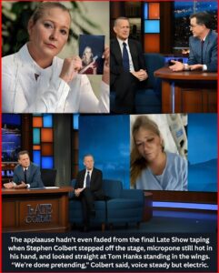 “No more sponsors. No more notes from the top. No more pretending the powerful are untouchable,” Colbert declared, voice steady. Hanks, standing beside him, added simply, “We’ve spent our careers in rooms where truth gets edited for comfort. We’re done.”