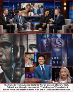 In a seismic shift for American media, Jon Stewart, Trevor Noah, Stephen Colbert, and Jimmy Kimmel—four of the most influential satirical voices in America—have united to launch the “Truth Program,” an uncensored, independent news platform that has already surpassed 4 billion views worldwide since its dramatic reveal.