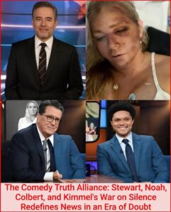 In a seismic shift for American media, Jon Stewart, Trevor Noah, Stephen Colbert, and Jimmy Kimmel — four satirical giants who once defined late-night rivalry — have united to launch the “Truth Program,” an uncensored, independent news platform that has already surpassed 1.3 billion views worldwide since its dramatic reveal.