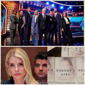 The episode, titled “The Reckoning,” opened without the usual monologue banter. Stewart, flanked by the full correspondent team—a rare assembly signaling gravity—held Virginia Giuffre’s memoir Nobody’s Girl aloft. “This woman was trafficked at 16, abused by princes and predators, and fought until her last breath on April 25,” Stewart said, voice steady but edged with fury. “Her truth named the untouchables—and cost her everything.”
