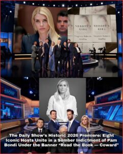 Across the screen flashed the episode’s stark theme in bold letters: “READ THE BOOK — COWARD.” The message was aimed squarely at Attorney General Pam Bondi, whose Department of Justice had repeatedly delayed and heavily redacted the full release of Epstein files, despite the bipartisan Epstein Files Transparency Act’s December 2025 deadline and promises of accountability.