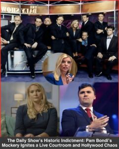 The hosts—Jon Stewart, Trevor Noah, Stephen Colbert, John Oliver, Samantha Bee, Hasan Minhaj, Jordan Klepper, and Roy Wood Jr.—stood up, voices no longer trembling but razor-sharp with determination. They declared that the truth must be spoken — and that Bondi had just opened the door to this uprising. As the episode went viral, millions rushed to watch, sending Hollywood into a state of high alert: emergency PR responses, lawyers scrambling, and the entire entertainment ecosystem pulled into the chaos.