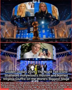 The rest of the ceremony continued, but the energy had shifted irreversibly. Winners spoke with unusual restraint; jokes landed softer. What began as Hollywood’s annual self-congratulation ended as ground zero for truth: ten voices, one name, a silence louder than any speech. In that frozen moment, the Golden Globes stopped celebrating fiction and confronted a reality too long ignored. Virginia Giuffre’s truth had finally breached the velvet rope—not through scandal or leak, but through the quiet, unified power of those who once stood beside the powerful and now chose to stand with her.