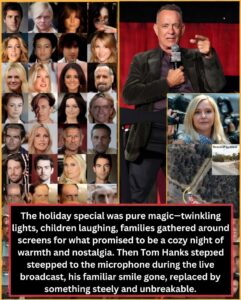 Christmas Eve 2025 was meant to be gentle. Families gathered around screens for the annual CBS holiday special: carols, celebrity cameos, warm messages of hope. The set glittered with soft gold lights and evergreen. Tom Hanks, introduced as a surprise guest to read a seasonal reflection, walked out in a simple navy sweater. The audience smiled. The host beamed. Then everything changed.
