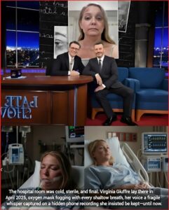 The 28-minute segment opened with no applause, no opening credits, no jokes. Colbert, voice steady but eyes heavy, explained that Giuffre, bedridden and frail, had insisted on one last recording. “She knew the end was coming,” he said. “She asked that her words be heard when no one could silence her anymore.” Kimmel, seated beside him, added quietly, “We’re putting this on air because someone has to. And if this is the last thing we do, it will be the truth.”