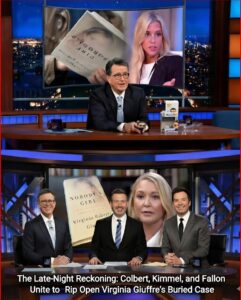 With Giuffre’s posthumous memoir fueling the fire, they dissected timelines, suppressed testimonies, and alleged protection for the powerful, turning comedy into confrontation. Empathy surged for the survivor whose fight outlived her, while shock rippled through viewers at seeing late-night icons demand accountability from the highest levels. Kimmel read damning excerpts from Nobody’s Girl, Fallon highlighted ignored evidence and contradictory official statements, and Colbert delivered the gut punch: