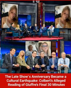 The broadcast, as the story goes, transformed an anniversary episode into a cultural earthquake. Before a stunned audience of millions, Colbert allegedly read aloud the words attributed to Virginia Giuffre in the final 30 minutes of her life — words that named 16 individuals, described as members of a hidden network of power long shielded from scrutiny.