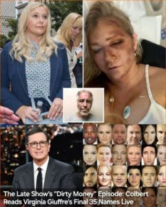Inside were the final pages Virginia Giuffre left behind before her death in April 2025 — pages the media had been too afraid to touch for years. Colbert took a deep breath, looked straight into the camera, and began reading aloud.