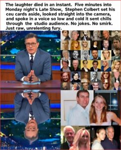 Stephen Colbert returned to comedy the next night. But those five minutes changed everything. Satire can mock power. Truth can terrify it.