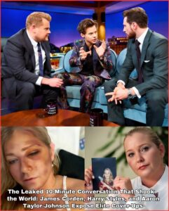 In a leak spreading at unimaginable speed across the internet on January 12, 2026, three major celebrities — late-night host James Corden, singer Harry Styles, and actor Aaron Taylor-Johnson — appeared together in a private, off-the-record conversation that was never meant to be public. What they revealed in just 10 minutes has become one of the most explosive media moments of the decade.