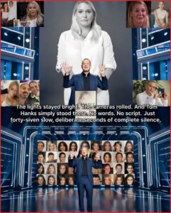 Hanks did not speak. For forty-seven minutes he sat motionless, eyes fixed on the pages, turning them slowly, one after another. His face remained composed—neither dramatic nor impassive, simply present. The silence stretched across networks that had agreed to carry the feed unedited and uninterrupted. No commercials. No chyrons. Only the faint sound of paper shifting and the occasional soft breath.
