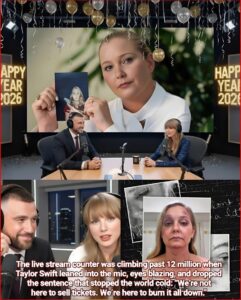 On the evening of January 21, 2026, Taylor Swift and Travis Kelce did what no one expected: they went live from a private studio in Nashville, no filters, no publicists, no script. The stream, promoted only thirty minutes in advance as “A Conversation We Can’t Avoid,” drew 87 million viewers in its first hour. What followed was a $190 million detonation that left Hollywood trembling.