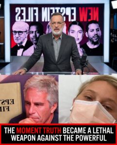 In a stunning broadcast that has already sent shockwaves across continents, Hanks presented a meticulously compiled dossier of names, documented connections, financial records, and survivor testimonies. The presentation was clinical, unflinching, and devastating. No dramatic music, no sensational editing — just cold, hard facts laid bare under studio lights. The elite’s carefully constructed fortress of silence, built over years through legal threats, media control, and strategic payoffs, is now crumbling in real time.