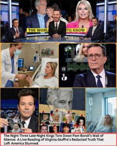 The wall is down. The truth is out. And the powerful who once believed they could outrun it now face a light they cannot extinguish.<|control12|>The Night Three Late-Night Kings Tore Down Pam Bondi’s Wall of Silence: A Live Reading of Virginia Giuffre’s Redacted Truth That Left America Stunned