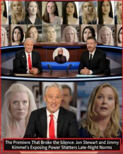 In this reimagined chapter of television history, two of the most enduring voices in late-night comedy—Jon Stewart and Jimmy Kimmel—stepped beyond satire and entertainment to deliver a seismic shift. The launch of their collaborative special, Exposing Power, was depicted as an event that fundamentally altered the American media environment. Far from a conventional talk-show episode or celebrity interview, the premiere was envisioned as a deliberate fracture in decades of carefully maintained quiet.