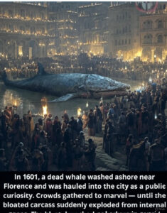 In 1601, a massive whale washed up along the Tuscan coast. The creature was dragged to Florence, where curious citizens flocked to see this giant of the seas. For days, the whale lay on display, a symbol of nature’s power and mystery.