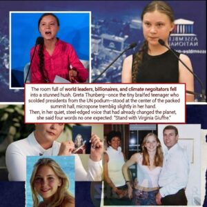 The hall froze. Gasps rippled through the crowd. Cameras clicked furiously as the words hung in the silence. Thunberg continued, unflinching. “Virginia Giuffre was trafficked at sixteen. She was used by the most powerful men on earth—princes, politicians, billionaires—and told she would never be believed. She fought anyway. She sued. She spoke. She wrote a memoir that named them all. And when the weight became too much, she took her own life in April 2025. Her story is not separate from the crises we face here. It is the same crisis: a world where the powerful believe they are untouchable, where silence is bought, and where the vulnerable pay the price.”