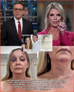 He began reading. First came descriptions of private flights and secluded estates, then the slow roll of names—some already familiar from court filings, others long shielded by wealth, influence, or institutional caution. Each name landed like a stone in still water. No dramatic music. No cutaways. Just Colbert’s measured cadence and the growing stillness in the room.