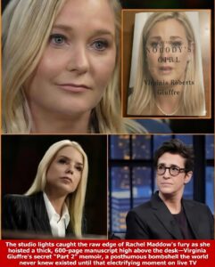 In a moment that stopped the nation cold, MSNBC’s Rachel Maddow held up a thick, unmarked binder on live television, declaring it a previously unknown 600-page secret manuscript authored by the late Virginia Giuffre. The posthumous work, described as a raw, unfiltered “Part 2” to her bestselling memoir Nobody’s Girl, contains explosive new details about the Epstein network, unreleased testimonies, and allegations that reach deeper into elite circles than anything made public before. Giuffre, who tragically died by suicide in April 2025, had reportedly completed this follow-up in the final months of her life, insisting it be preserved and eventually revealed—no matter the cost.