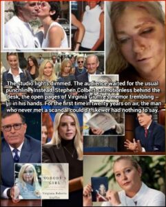 Colbert had read the memoir the week before, he told the audience. He had intended to turn it into material: sharp satire, righteous anger wrapped in punchlines, the way he had handled scandals for two decades. But the pages kept coming—names, dates, rooms, the casual cruelty of men who believed themselves untouchable. What he found was not fodder for comedy. It was testimony that made jokes feel obscene.
