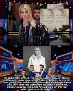 Jon Stewart walked onto the Daily Show set carrying nothing but a thick manila folder—no jokes, no monologue preamble. The audience, expecting the familiar rhythm of satire, went quiet as he placed the folder on the desk with deliberate care. Then, without a word, he opened it and began reading. Names. Dates. Donations. Legal maneuvers. Emails. Every line was sourced, footnoted, and damning.