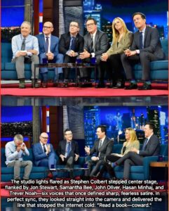 Critics called it overdue; detractors labeled it preachy. Yet the numbers speak louder: nearly a billion views prove the appetite for this brand of truth-telling remains voracious. Colbert and his reunited cohort didn’t just launch a show—they reignited a movement. “Read a book — coward” isn’t just a line; it’s a gauntlet thrown. And millions have picked it up.