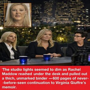 Midway through the program, Maddow reached beneath the desk and produced a heavy, unmarked volume—600 pages bound in plain black, bearing only a small label: “Nobody’s Girl: Continuation – Virginia Giuffre, Final Draft, 2025.” She explained that the manuscript, entrusted to trusted legal and journalistic collaborators shortly before Giuffre’s death, had been withheld from the public edition released in October 2025. Until now.