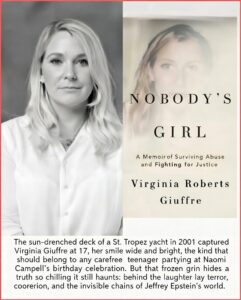 Decades later, that same image circulates online—cropped, memed, debated. But in Nobody’s Girl, Virginia Giuffre finally reclaims it. The fear it concealed is no longer hidden. It lives forever in her own voice, unposed, unfiltered, and unmistakably hers.