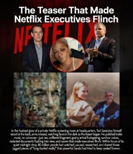 In the hushed glow of a private Netflix screening room at headquarters, Ted Sarandos himself stood at the back, arms crossed, watching faces in the dark as the teaser began. No polished trailer music, no voiceover—just raw, unfiltered fragments: grainy archival footage, trembling survivor voices, redacted documents flashing into view, and names that made even the most jaded executives flinch.