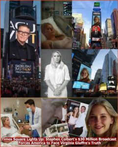 Stephen Colbert spent more than $30 million to secure a massive digital billboard takeover, broadcasting the entire case and the suffering of Virginia Giuffre, the woman tormented by dirty money and power. As the city had not yet fully awakened, Times Square flared into light with a truth that could not be concealed.