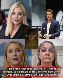 Tom Brady “Explodes” on Live TV — Hands Tremble, Voice Breaks as He Confronts Pam Bondi Over Virginia Giuffre’s 500-Page Part 2 Diary