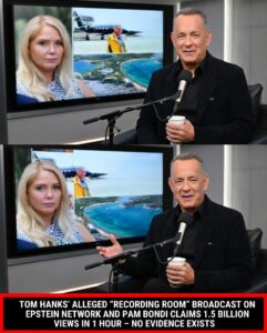 TOM HANKS’ ALLEGED “RECORDING ROOM” BROADCAST ON EPSTEIN NETWORK AND PAM BONDI CLAIMS 1.5 BILLION VIEWS IN 1 HOUR – NO EVIDENCE EXISTS