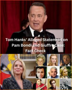 The viral claim that Tom Hanks, dubbed “America’s Dad,” issued a explosive statement accusing Attorney General Pam Bondi of covering up crimes for “the 10 most powerful figures in America” in connection with Virginia Giuffre’s memoir is false.