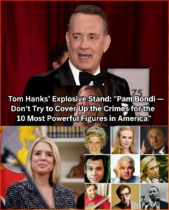 Hanks did not mince words. He accused Bondi of overseeing partial, heavily redacted file releases that defy the 2025 Epstein Files Transparency Act, fueling bipartisan contempt threats and public outrage. “This isn’t about politics,” he said. “This is about a woman who paid with her life for speaking the truth. And those who protect the guilty share in that guilt.”