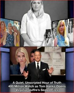 A lone tear slipped slowly down Tom Hanks’ face under the unforgiving glare of studio lights. There was no cue, no dramatic swell of strings, no practiced sob for the cameras. It was simply the moment a man who had spent ten years holding everything inside finally let one piece of the burden fall. On live television, in an unbroken sixty-minute segment broadcast to an estimated 400 million viewers across every continent, Hanks sat alone at a plain table and did what no one expected: he released Virginia Giuffre’s once-sealed files into the open.