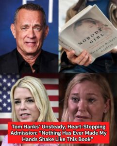 Tom Hanks stood there alone. In his hands he held a thick, 400-page hardcover—Virginia Giuffre’s memoir, Nobody’s Girl. The book’s plain dust jacket showed no flashy design, only the author’s name and a quiet, resolute photograph. Yet the way Hanks gripped it betrayed everything. His usually steady, reassuring hands—the same hands that have steadied countless characters through crisis on screen—were visibly trembling. Not a dramatic quiver for effect, but a genuine, involuntary shake that he made no attempt to hide.