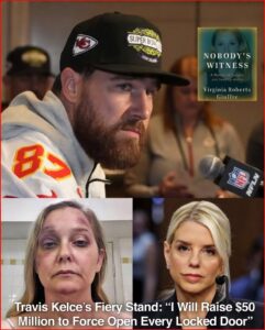 Social media detonated instantly. Clips amassed tens of millions of views overnight, #Kelce50Million and #JusticeForVirginia trending globally. Fans praised the transformation: “From end zone to front lines—Travis is the real MVP.” Hollywood and elite circles went quiet; speculation swirled about what truths the pledge would unearth.
