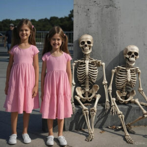 Pinned beneath a rusted metal grate in the corner lay the remains of two small skeletons, curled as if trying to reach each other. Identifiable only by the brittle plastic balloon strings still clutched in their bones.
