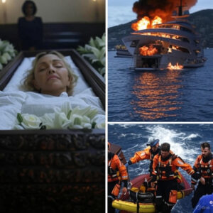 In an instant, the serene Amalfi coast erupted into chaos as a blinding fireball swallowed Madonna’s luxury yacht, transforming her dream getaway into a smoldering ruin. Just hours ago, the Queen of Pop was confirmed dead after a mysterious explosion tore through the vessel, leaving rescuers scrambling through thick smoke and debris. Witnesses stood frozen, their gasps mingling with the cries of panic, as the glittering sea turned dark with tragedy. The world reeled in shock as her body was recovered, sparking a flood of tears and tributes from fans clutching flowers along the shore. Was it a hidden flaw, a reckless spark, or something more sinister that ignited this devastating blaze? The answer remains locked in the charred wreckage, pulling at the heart of a grieving global audience.