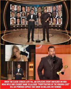 WHEN THE CLOCK STRUCK 6:59 P.M., AN EXPLOSIVE EVENT UNFOLDED ON HBO: NOAH WYLE AND COLBERT NAME 35 ALLEGED “PERPETRATORS OF THE VIRGINIA CASE” IN A 3D-POWERED EXPOSÉ THAT DREW 30 MILLION LIVE VIEWERS